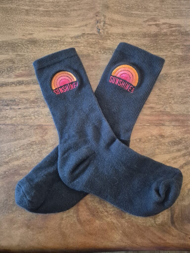Stylisch, bequem und mit Liebe zum Detail bestickt – die Socken tragen den SUNSHINE LIVE Schriftzug sowie das SUN-Symbol in gelb oder orange.